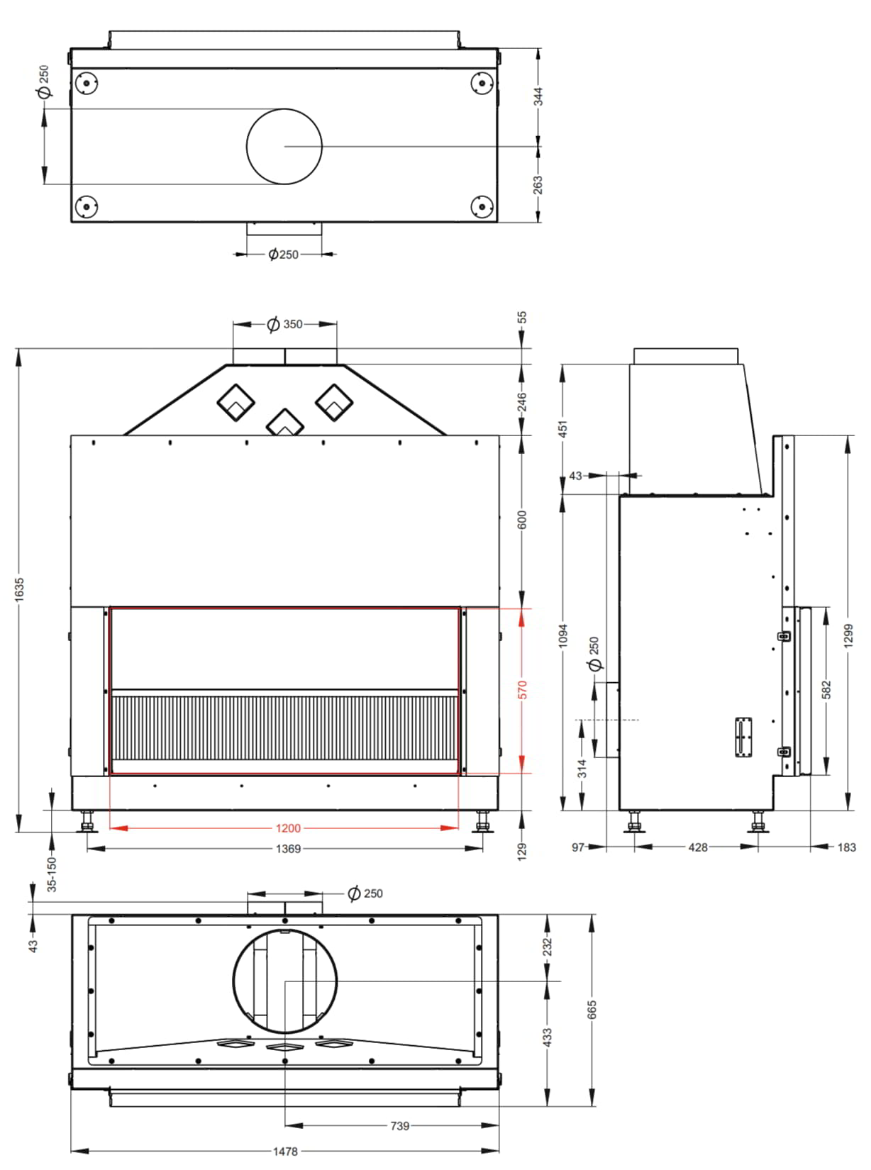Топка Astov открытая с сеткой О1С 120\57