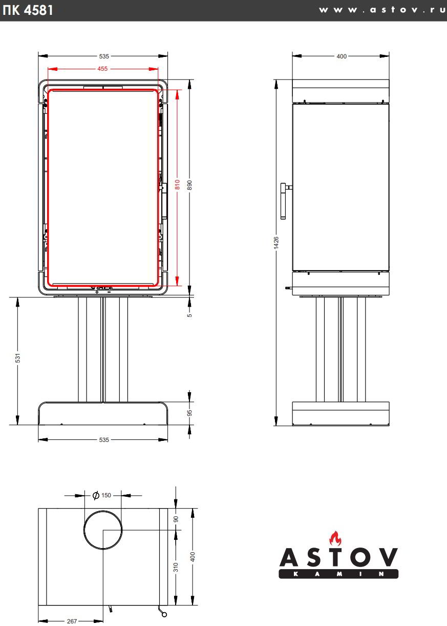 Печь-камин Astov Куб ПК 4581 Мет. на ноге
