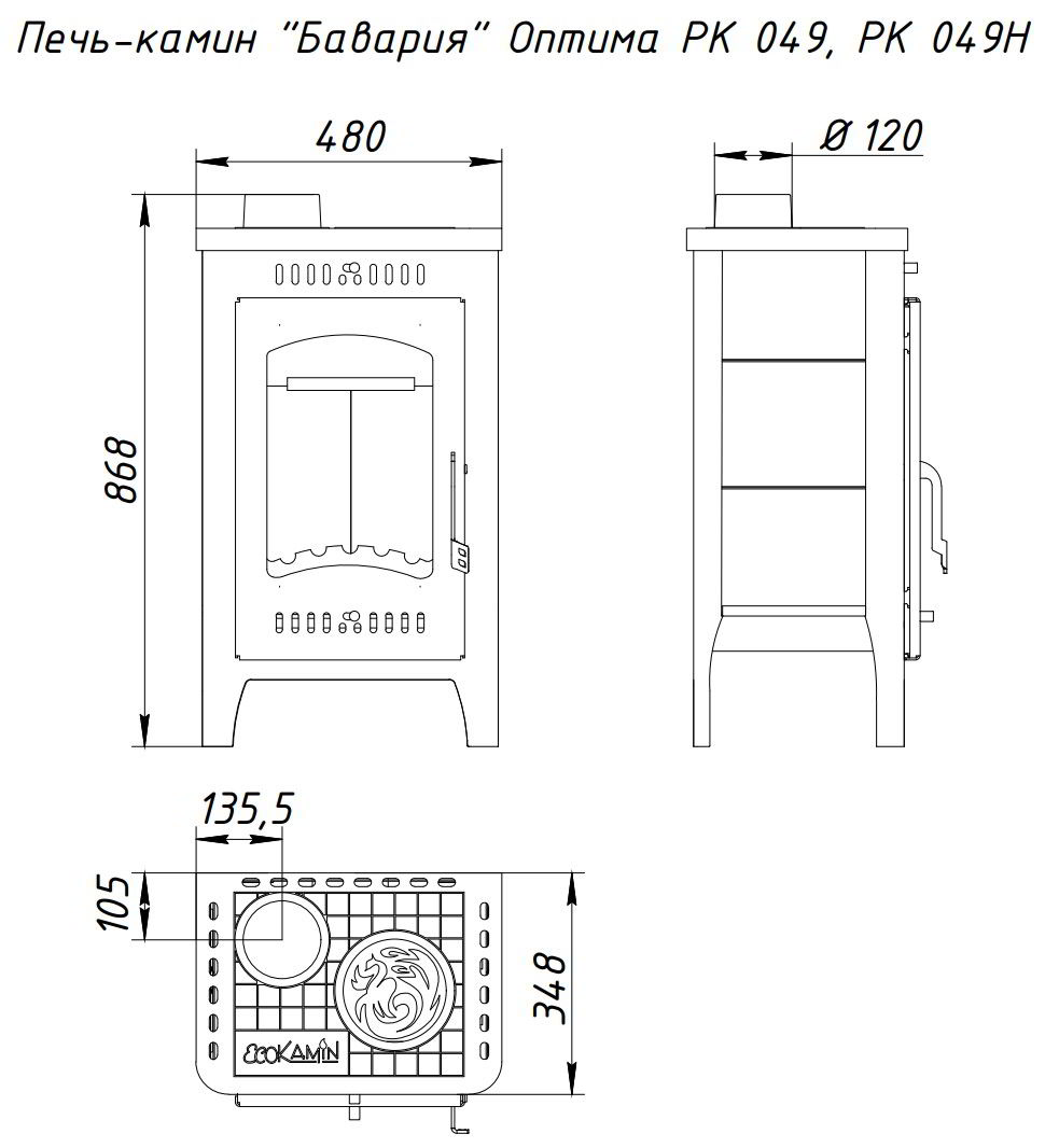 Печь EcoKamin Бавария Оптима Незабудка с плитой