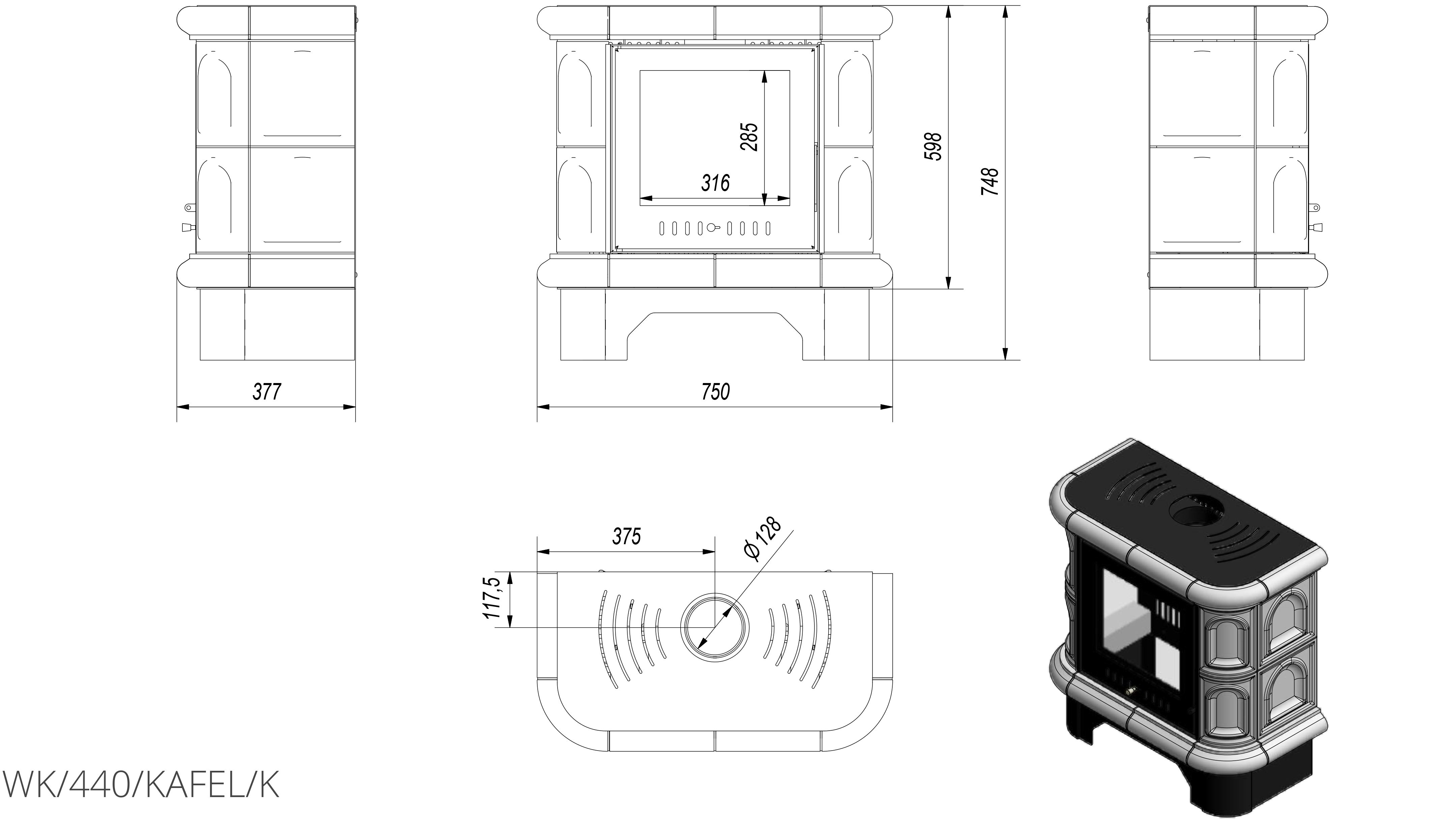 Печь Kratki WK 440 kafel Cream