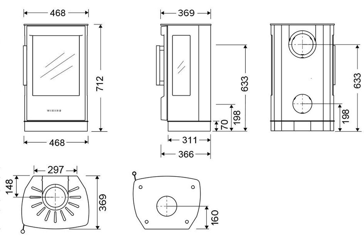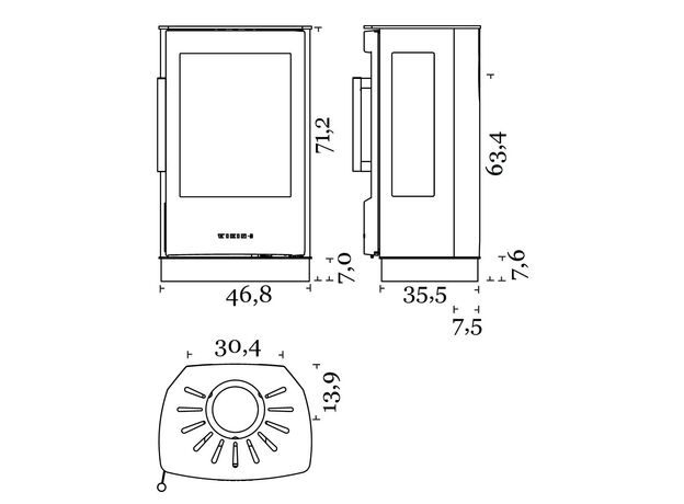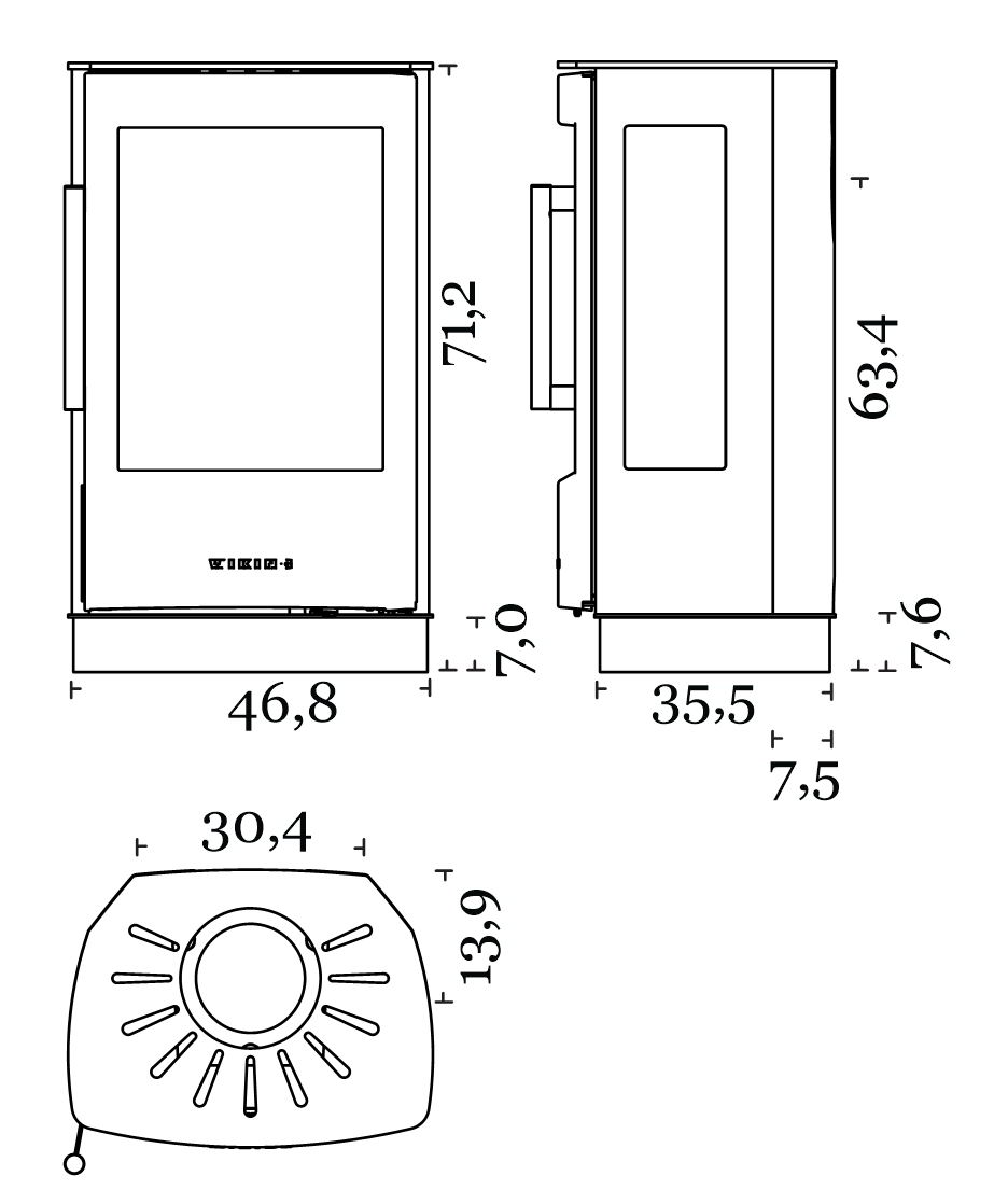 Габариты. Печь не занимает много места, не требует большого пространства для установки. При этом Wiking Miro имеет огромное остекление. Для установки печи не нужен фундамент. Её можно устанавливать на любой тип полового покрытия. В том числе на деревянные полы или на ламинат. Нижняя часть Викинг Миро не нагревается СОВСЕМ. Для защиты от возможного попадания случайных угольков на пол мы укладываем перед печью небольшой стальной или стеклянный притопочный лист.