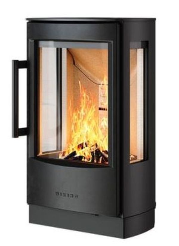 Качественная скандинавская печь с большим стеклом и умеренной мощностью.