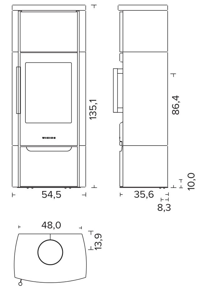 Габариты. Печь не занимает много места, не требует большого пространства для установки. При этом Wiking Miro имеет огромное остекление. Для установки печи не нужен фундамент. Её можно устанавливать на любой тип полового покрытия. В том числе на деревянные полы или на ламинат. Нижняя часть Викинг Миро не нагревается СОВСЕМ. Для защиты от возможного попадания случайных угольков на пол мы укладываем перед печью небольшой стальной или стеклянный притопочный лист.